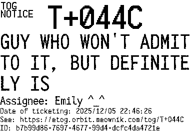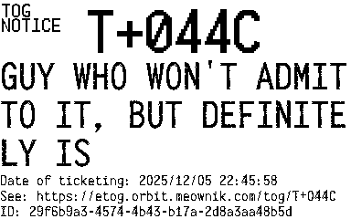 Orbit eTOG Listing Service: T+044C GUY WHO WON'T ADMIT TO IT, BUT DEFINITELY IS