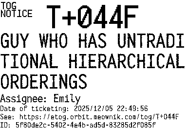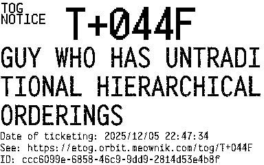Orbit eTOG Listing Service: T+044F GUY WHO HAS UNTRADITIONAL HIERARCHICAL ORDERINGS