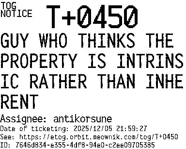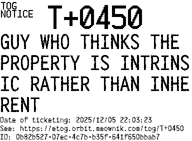 Orbit eTOG Listing Service: T+0450 GUY WHO THINKS THE PROPERTY IS INTRINSIC RATHER THAN INHERENT