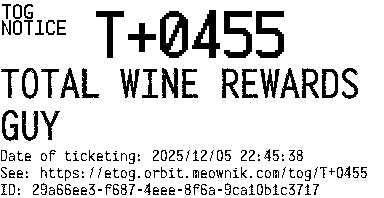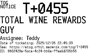 Orbit eTOG Listing Service: T+0455 TOTAL WINE REWARDS GUY