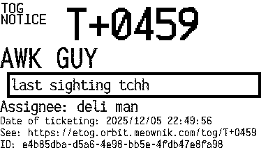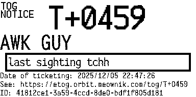 Orbit eTOG Listing Service: T+0459 AWK GUY