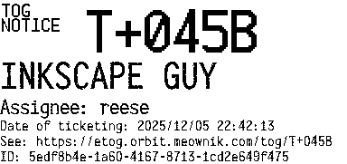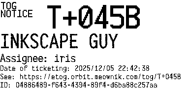Orbit eTOG Listing Service: T+045B INKSCAPE GUY