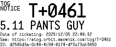 Orbit eTOG Listing Service: T+0461 5.11 PANTS GUY