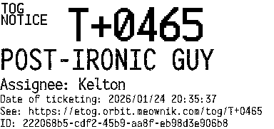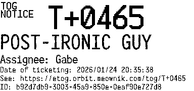 Orbit eTOG Listing Service: T+0465 POST-IRONIC GUY
