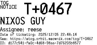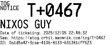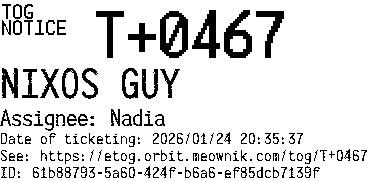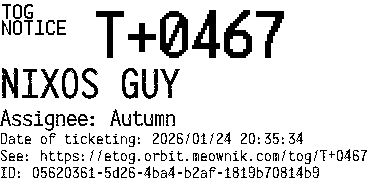 Orbit eTOG Listing Service: T+0467 NIXOS GUY
