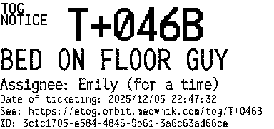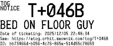 Orbit eTOG Listing Service: T+046B BED ON FLOOR GUY