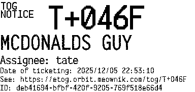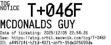 Orbit eTOG Listing Service: T+046F MCDONALDS GUY