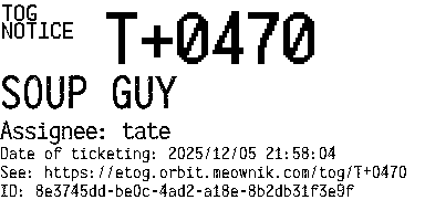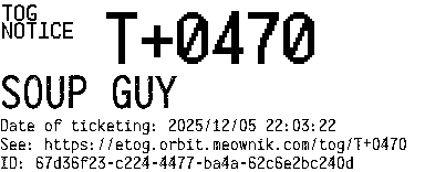 Orbit eTOG Listing Service: T+0470 SOUP GUY