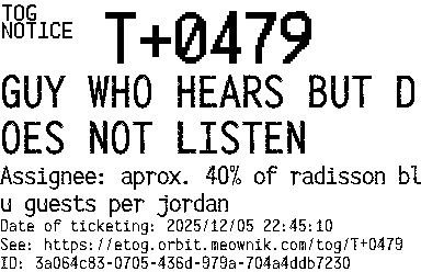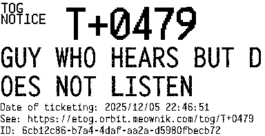 Orbit eTOG Listing Service: T+0479 GUY WHO HEARS BUT DOES NOT LISTEN