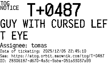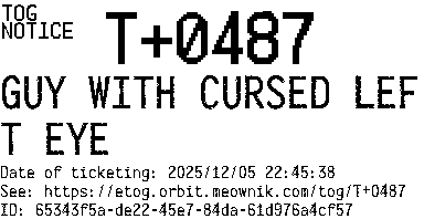 Orbit eTOG Listing Service: T+0487 GUY WITH CURSED LEFT EYE
