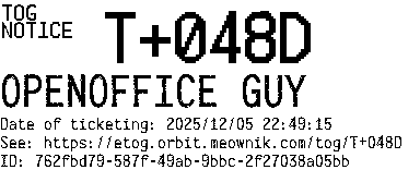Orbit eTOG Listing Service: T+048D OPENOFFICE GUY