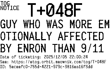 Orbit eTOG Listing Service: T+048F GUY WHO WAS MORE EMOTIONALLY AFFECTED BY ENRON THAN 9/11