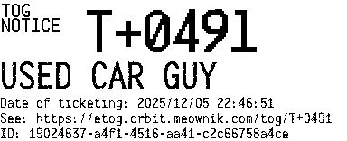 Orbit eTOG Listing Service: T+0491 USED CAR GUY