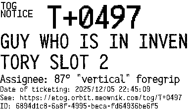 Orbit eTOG Listing Service: T+0497 GUY WHO IS IN INVENTORY SLOT 2