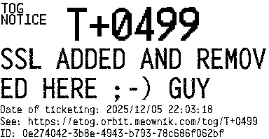 Orbit eTOG Listing Service: T+0499 SSL ADDED AND REMOVED HERE ;-) GUY