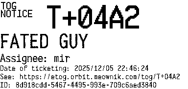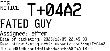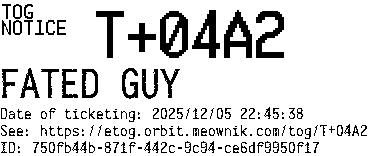 Orbit eTOG Listing Service: T+04A2 FATED GUY