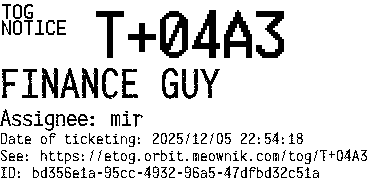 Orbit eTOG Listing Service: T+04A3 FINANCE GUY