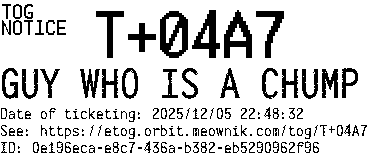 Orbit eTOG Listing Service: T+04A7 GUY WHO IS A CHUMP