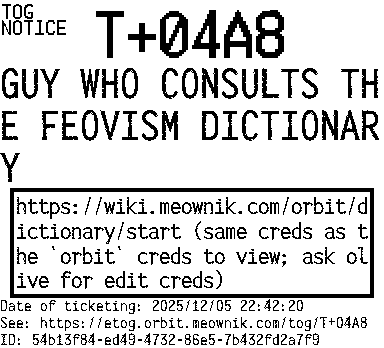 Orbit eTOG Listing Service: T+04A8 GUY WHO CONSULTS THE FEOVISM DICTIONARY