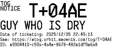 Orbit eTOG Listing Service: T+04AE GUY WHO IS DRY