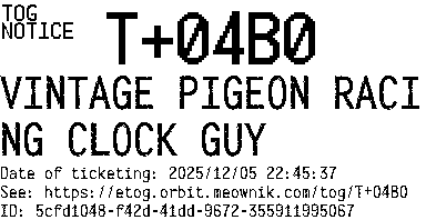 Orbit eTOG Listing Service: T+04B0 VINTAGE PIGEON RACING CLOCK GUY