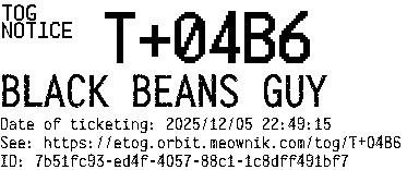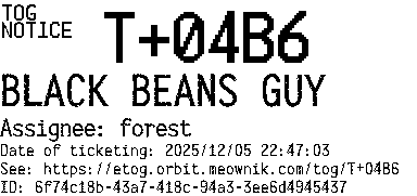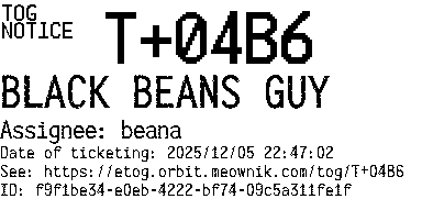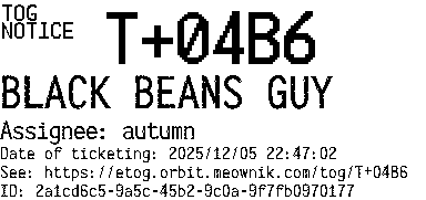 Orbit eTOG Listing Service: T+04B6 BLACK BEANS GUY