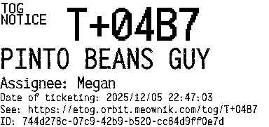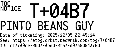 Orbit eTOG Listing Service: T+04B7 PINTO BEANS GUY