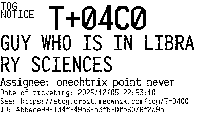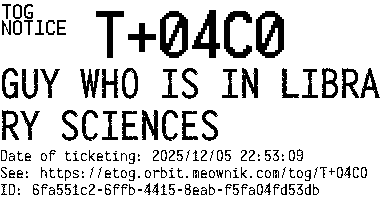 Orbit eTOG Listing Service: T+04C0 GUY WHO IS IN LIBRARY SCIENCES