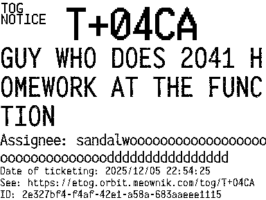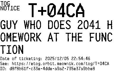 Orbit eTOG Listing Service: T+04CA GUY WHO DOES 2041 HOMEWORK AT THE FUNCTION