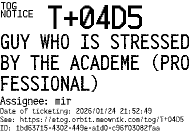Orbit eTOG Listing Service: T+04D5 GUY WHO IS STRESSED BY THE ACADEME (PROFESSIONAL)