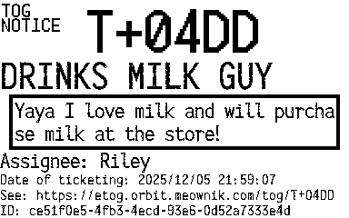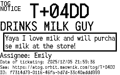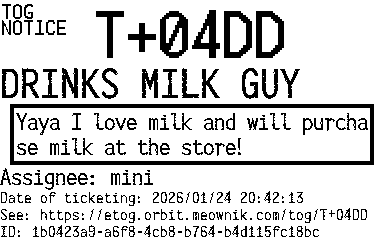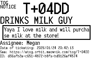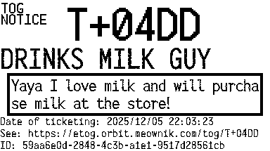 Orbit eTOG Listing Service: T+04DD DRINKS MILK GUY