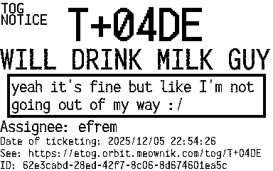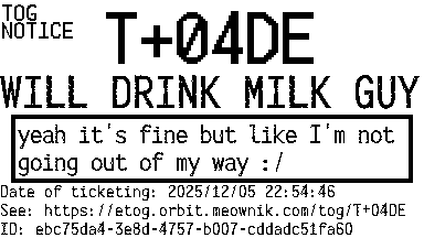 Orbit eTOG Listing Service: T+04DE WILL DRINK MILK GUY