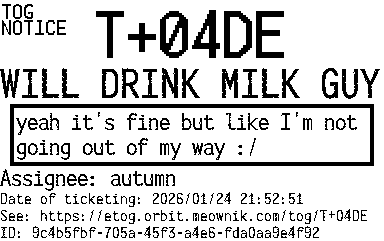Description: yeah it's fine but like I'm not going out of my way :/