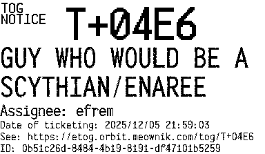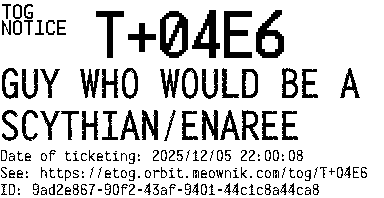 Orbit eTOG Listing Service: T+04E6 GUY WHO WOULD BE A SCYTHIAN/ENAREE