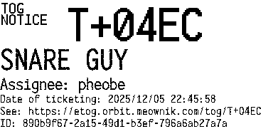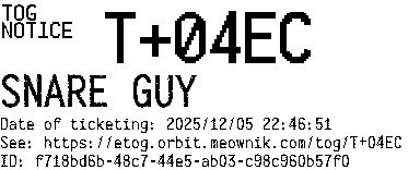 Orbit eTOG Listing Service: T+04EC SNARE GUY