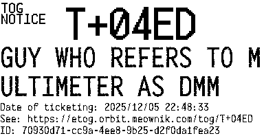 Orbit eTOG Listing Service: T+04ED GUY WHO REFERS TO MULTIMETER AS DMM