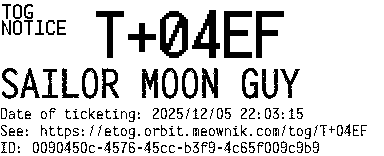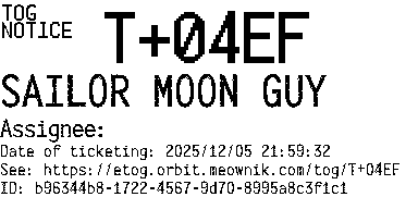 Orbit eTOG Listing Service: T+04EF SAILOR MOON GUY