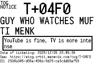 Orbit eTOG Listing Service: T+04F0 GUY WHO WATCHES MUFTI MENK