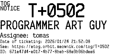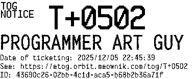 Orbit eTOG Listing Service: T+0502 PROGRAMMER ART GUY