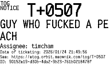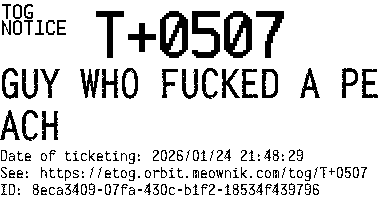 Orbit eTOG Listing Service: T+0507 GUY WHO FUCKED A PEACH
