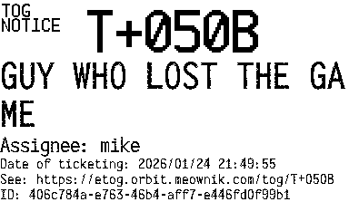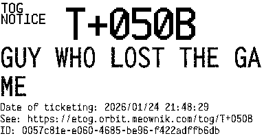 Orbit eTOG Listing Service: T+050B GUY WHO LOST THE GAME