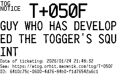Orbit eTOG Listing Service: T+050F GUY WHO HAS DEVELOPED THE TOGGER'S SQUINT