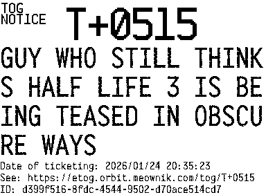Orbit eTOG Listing Service: T+0515 GUY WHO STILL THINKS HALF LIFE 3 IS BEING TEASED IN OBSCURE WAYS