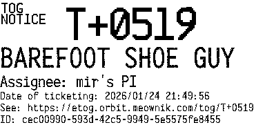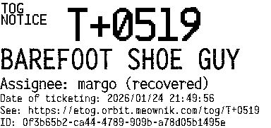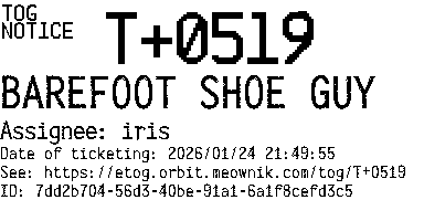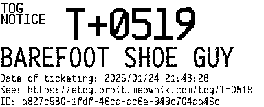 Orbit eTOG Listing Service: T+0519 BAREFOOT SHOE GUY