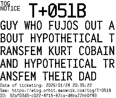 Orbit eTOG Listing Service: T+051B GUY WHO FUJOS OUT ABOUT HYPOTHETICAL TRANSFEM KURT COBAIN AND HYPOTHETICAL TRANSFEM THEIR DAD