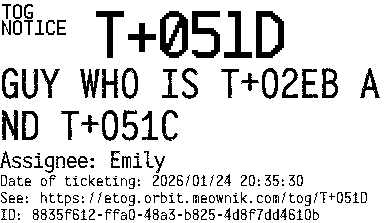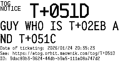Orbit eTOG Listing Service: T+051D GUY WHO IS T+02EB AND T+051C