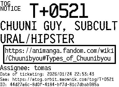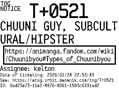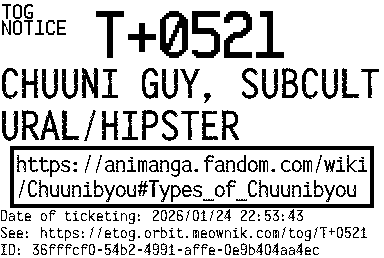 Orbit eTOG Listing Service: T+0521 CHUUNI GUY, SUBCULTURAL/HIPSTER
