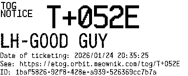 Orbit eTOG Listing Service: T+052E LH-GOOD GUY