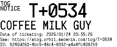 Orbit eTOG Listing Service: T+0534 COFFEE MILK GUY