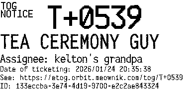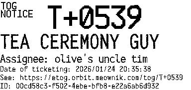 Orbit eTOG Listing Service: T+0539 TEA CEREMONY GUY